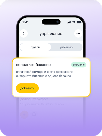 Добавляй до 30 номеров билайна с предоплатными тарифами и счета домашнего интернета без ограничений по тарифам и регионам