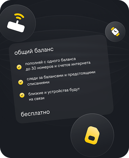 Добавь в общий баланс свои номера, номера близких, устройств и счета интернета